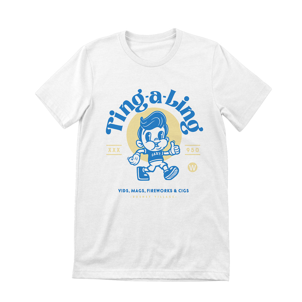It's one of those "if you know you know" type designs. Ting-a-Ling was a news agent in Bushey High Street, run by the infamous Gary - a music and film buff.